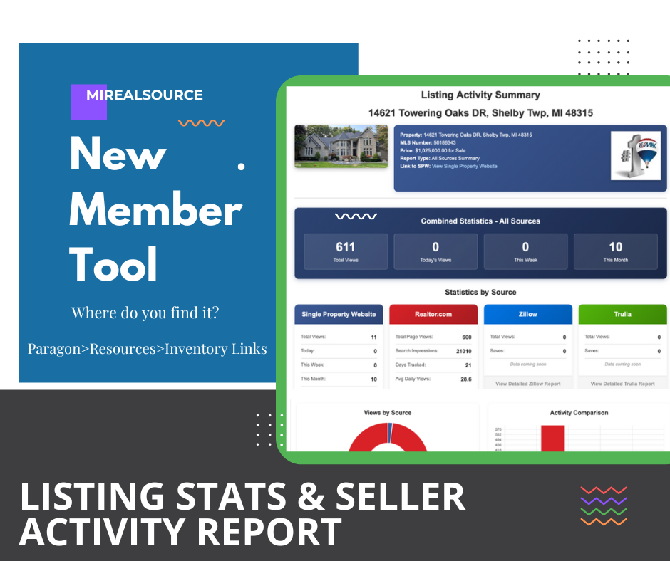 A New Seller Activity Report with Listing Stats is now LIVE for our members. It is currently in Phase 1 with analytics on the MiRealSource Single Property Website and tracking on social media, Zillow, Realtor.com and Trulia. In later Phases we plan to have seller scheduling/automation, MLS data, data shares, and IDX/Brokerage sites.